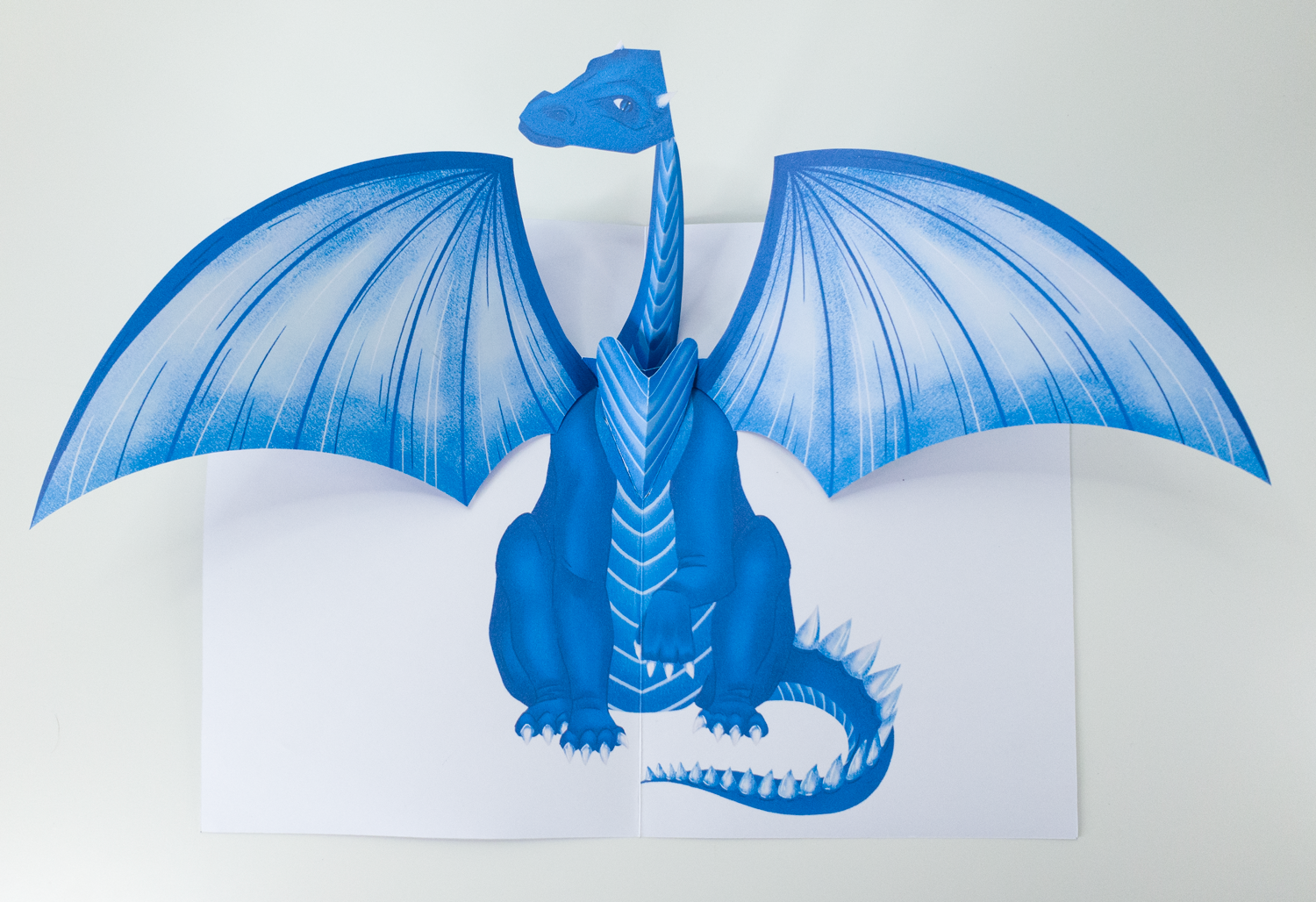 Conception et illustration d’une carte pop-up inspirée de la saga Eragon de Christopher Paolini. Le pop-up représente la dragonne Saphira.